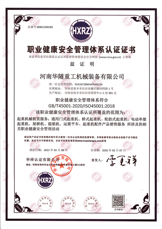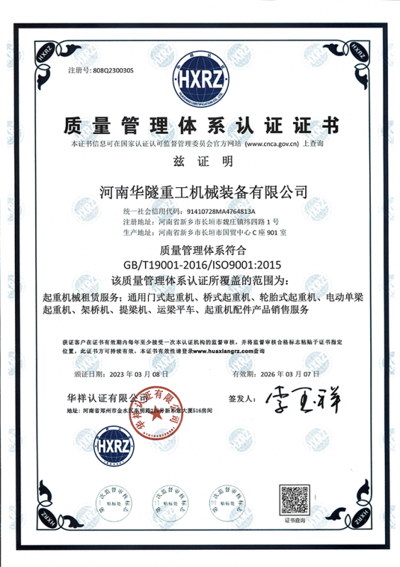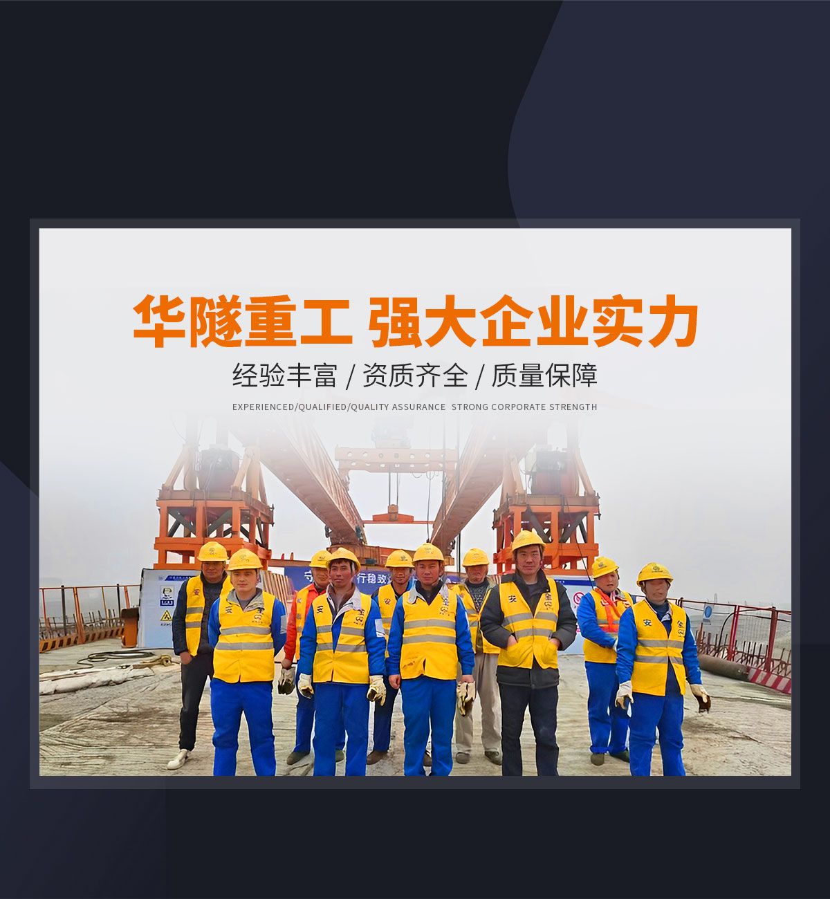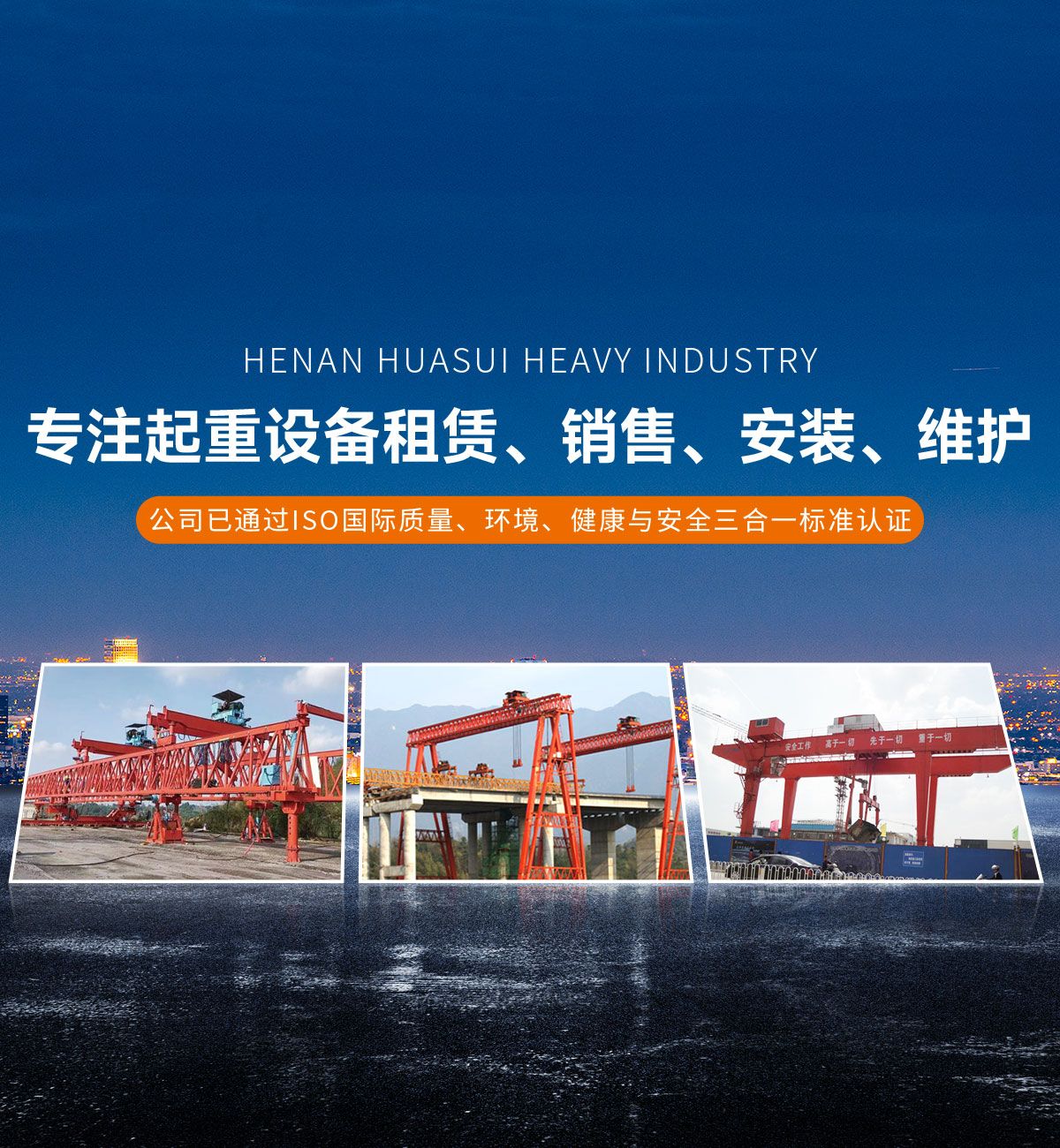 河南華隧重工機械裝備有限公司主要從事通用門式起重機、橋式起重機、電動單梁起重機,輪胎式起重機、架橋機、提梁機、遠梁平車、鋼絲繩電動萌蘆、卷揚機、起重配件制造、銷售:起重機械租賃、安裝和維修,起重設備園收,機械設備維修,鋼結構工程承包,橋梁工程及技術咨淘服務,銷售五金制品、機電設備:建設工程監(jiān)理,建設工程設計,各類工程建設活動,建筑勞務分包,建筑物折除作業(yè),施工作業(yè),工程管理服務,土石方工程施工,裝如發(fā)運。  公司已通過IS0國際質(zhì)量、環(huán)境、健康與安全三合一標準認證,特種設備制造許可證和特種設備安裝改造維修許可證。擁有完熟的質(zhì)量管理體系。嚴格的管理制度,強大的生產(chǎn)能力和先進的檢測手段,在保證產(chǎn)品質(zhì)量的同時,也具備了極強的市場競爭力。  公司堅持科技創(chuàng)新為理念,產(chǎn)品質(zhì)量為核心,注重信譽,建立了減信可靠、快捷、思速。便利周到的售后服務網(wǎng)絡。  我們擁有的技術專家和技術服務隊伍為客戶提供充善的售前技術支持和全天候的售后服務體系,讓您無后顧之憂,享受一站式的超值服務。  “華隧重工,伴您成功“是華隧重工永遠的宗指,真被的希望與各界朋友攜手并進。共創(chuàng)輝準!
